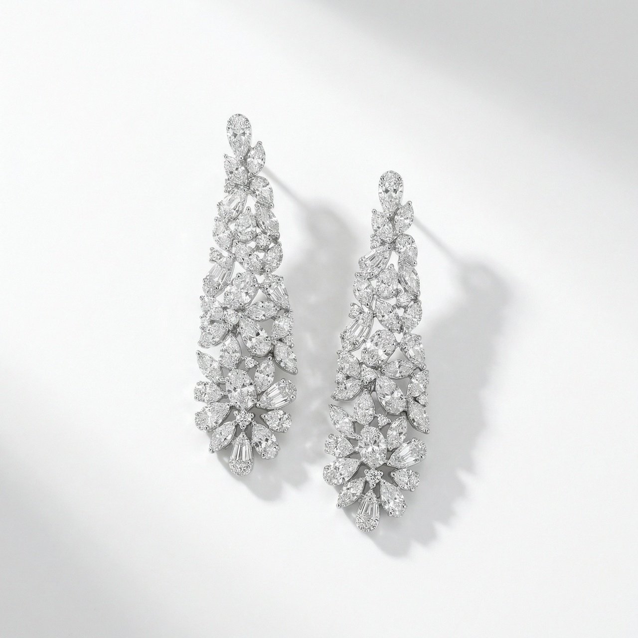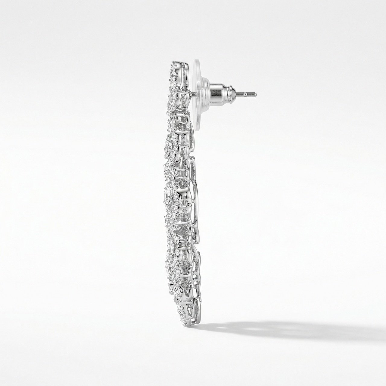 A stunning floral-inspired jewellery set featuring a graceful necklace crafted with rows of shimmering petal-shaped stones that curve elegantly around the neckline. Paired with matching dangling earrings that mirror the same intricate petal motif, this set exudes refined sparkle and timeless femininity. Perfect for occasions where you want a look that’s delicate, radiant, and effortlessly sophisticated.