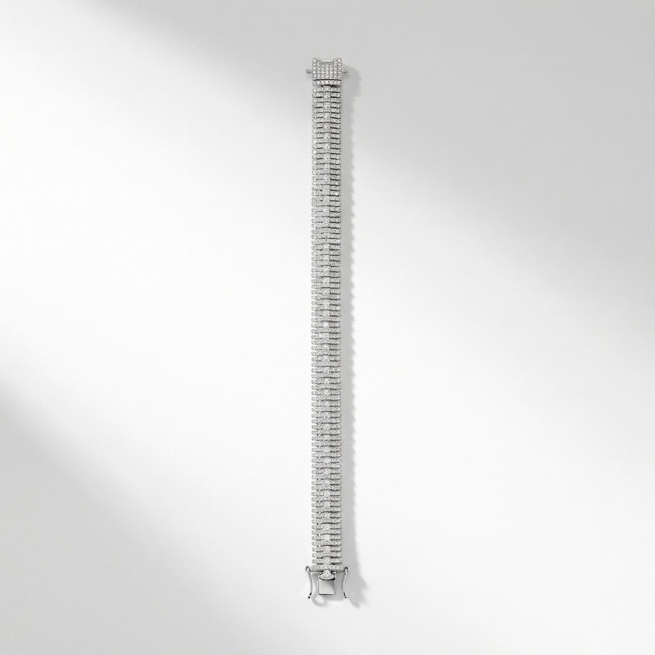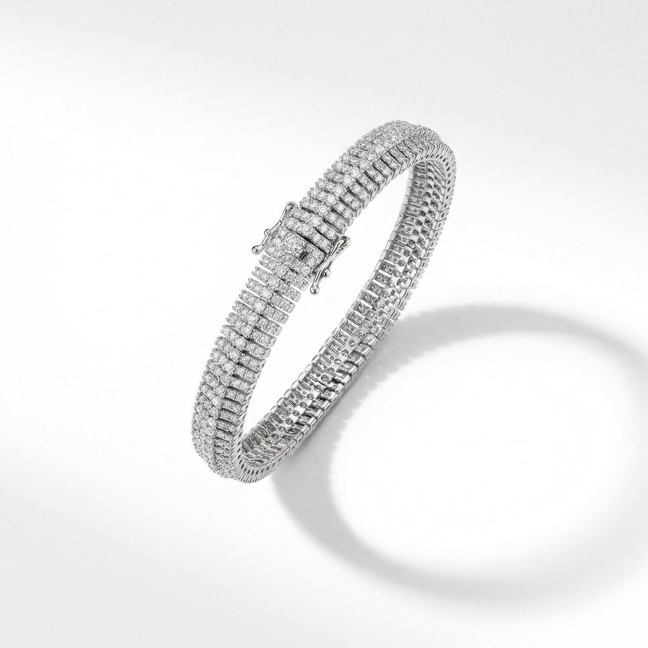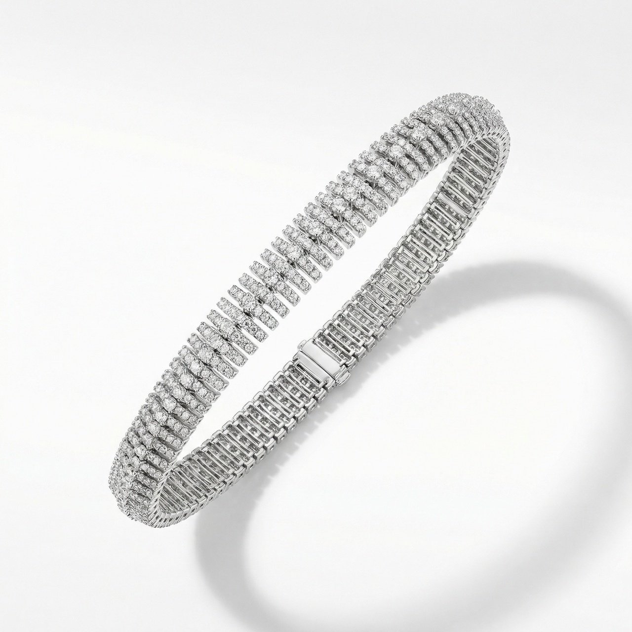 A bold, ultra-sparkling, flexible bracelet crafted with tightly set shimmering stones that create a smooth, snakelike flow. Its luxurious, high-shine finish and wide band give it a glamorous statement look perfect for evening wear.