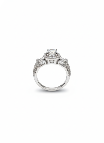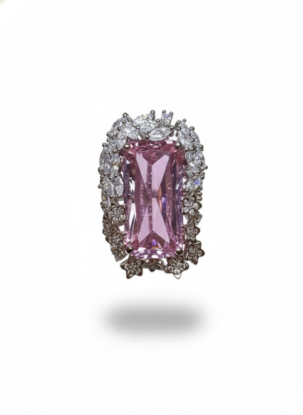 This ring features a dazzling criss-cross design, where rows of pavé stones sweep gracefully across one another, creating layers of shimmering movement. At the centre lies a single radiant stone, subtly anchored within the flowing structure. Modern, sculptural, and effortlessly elegant, it captures the beauty of light in motion.